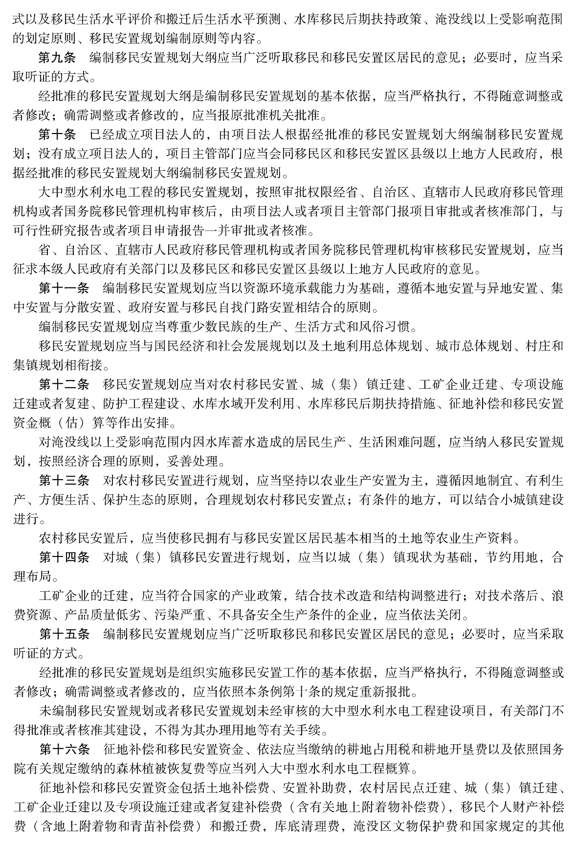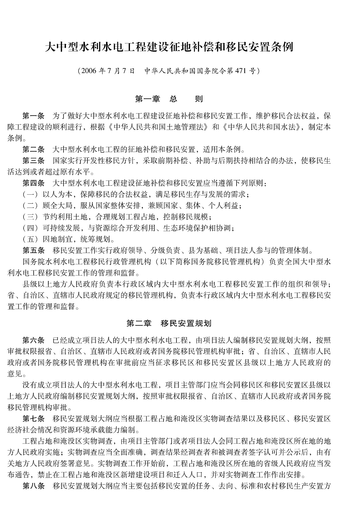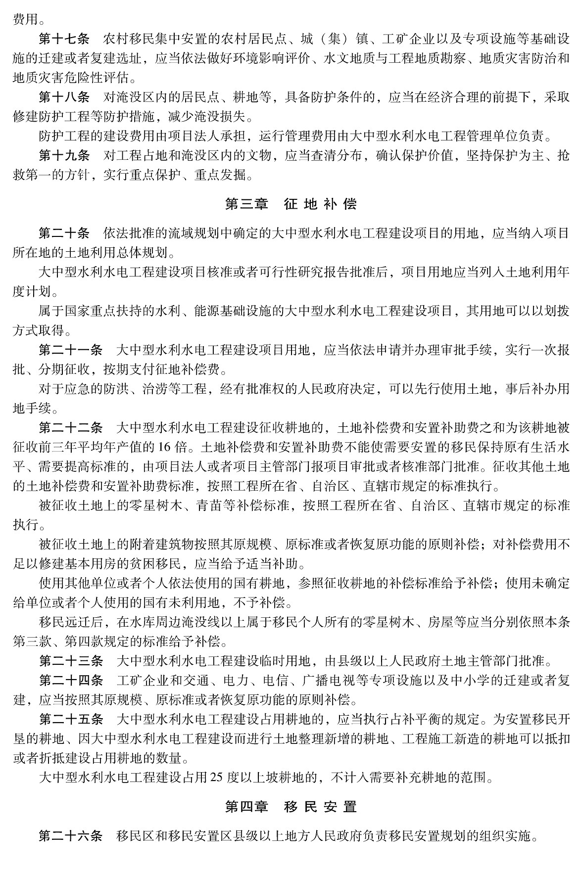 大中型水利水电工程建设征地补偿和移民安置条例