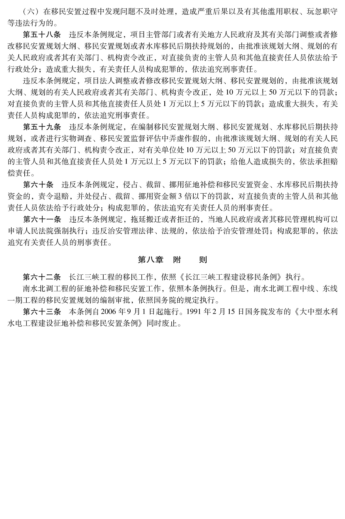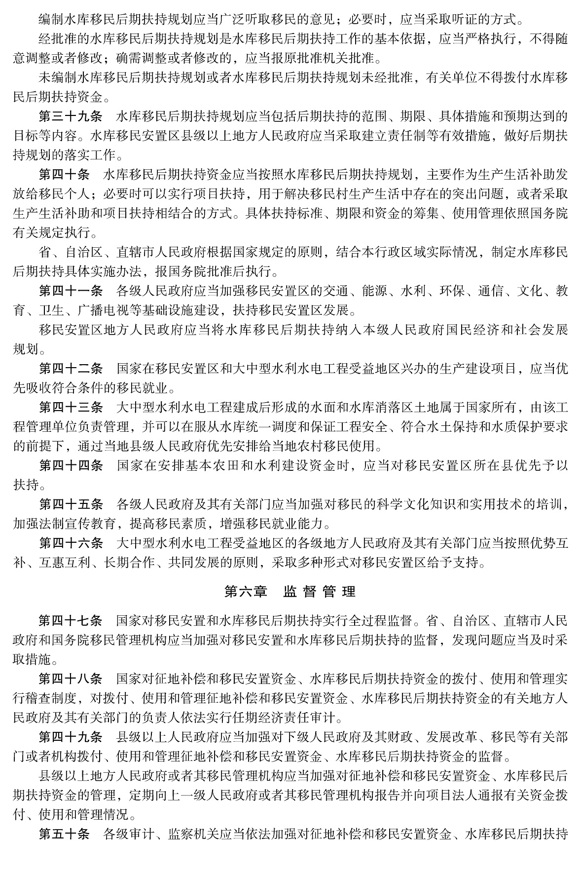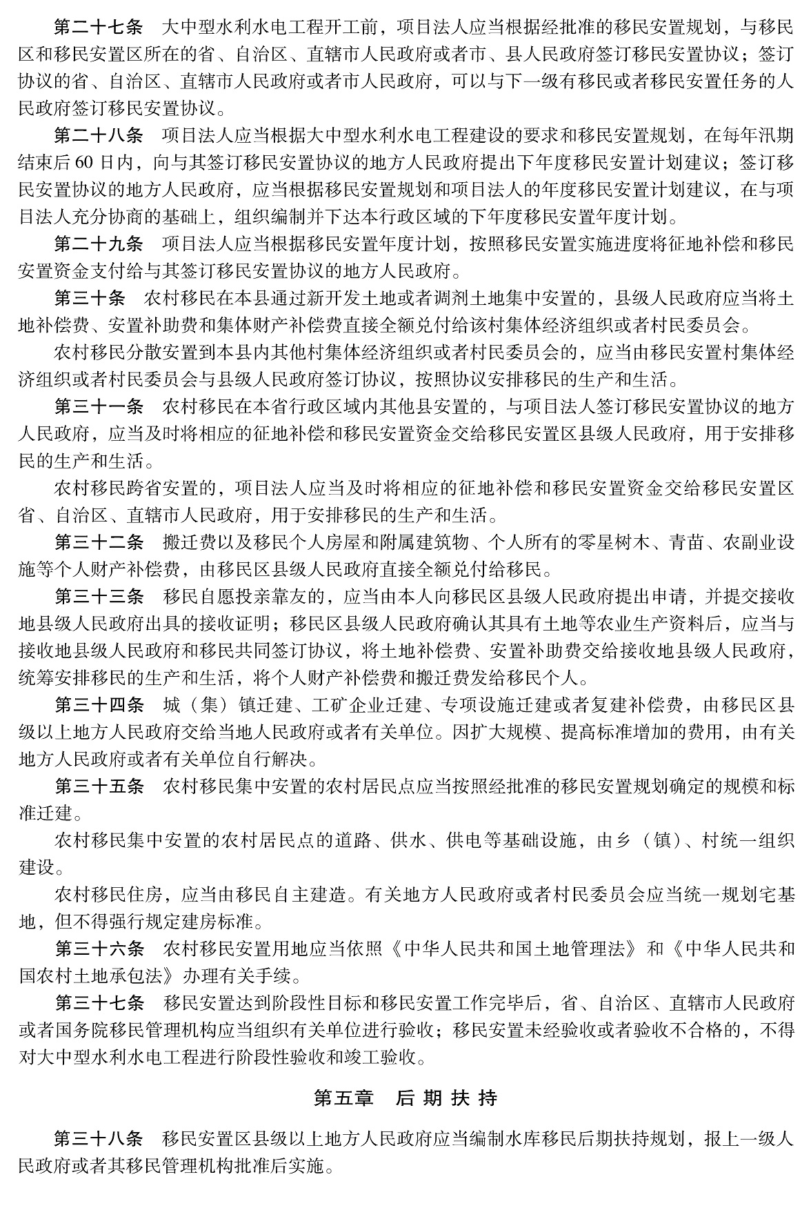 大中型水利水电工程建设征地补偿和移民安置条例