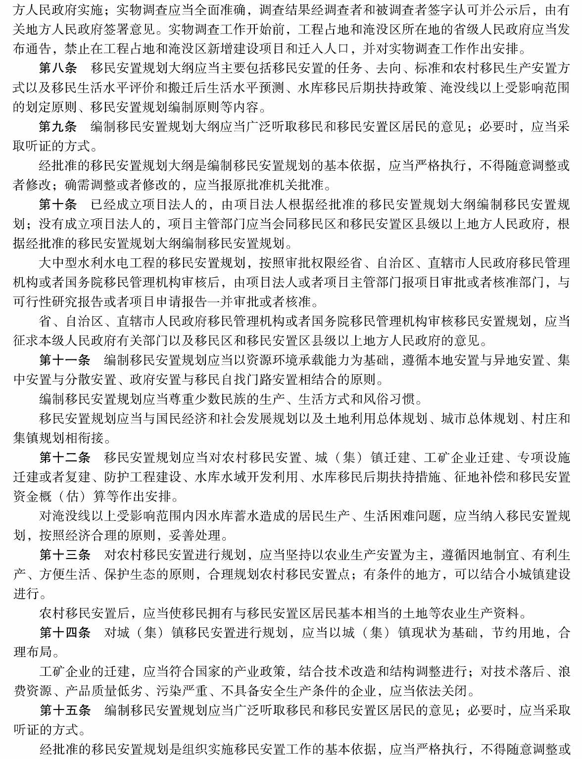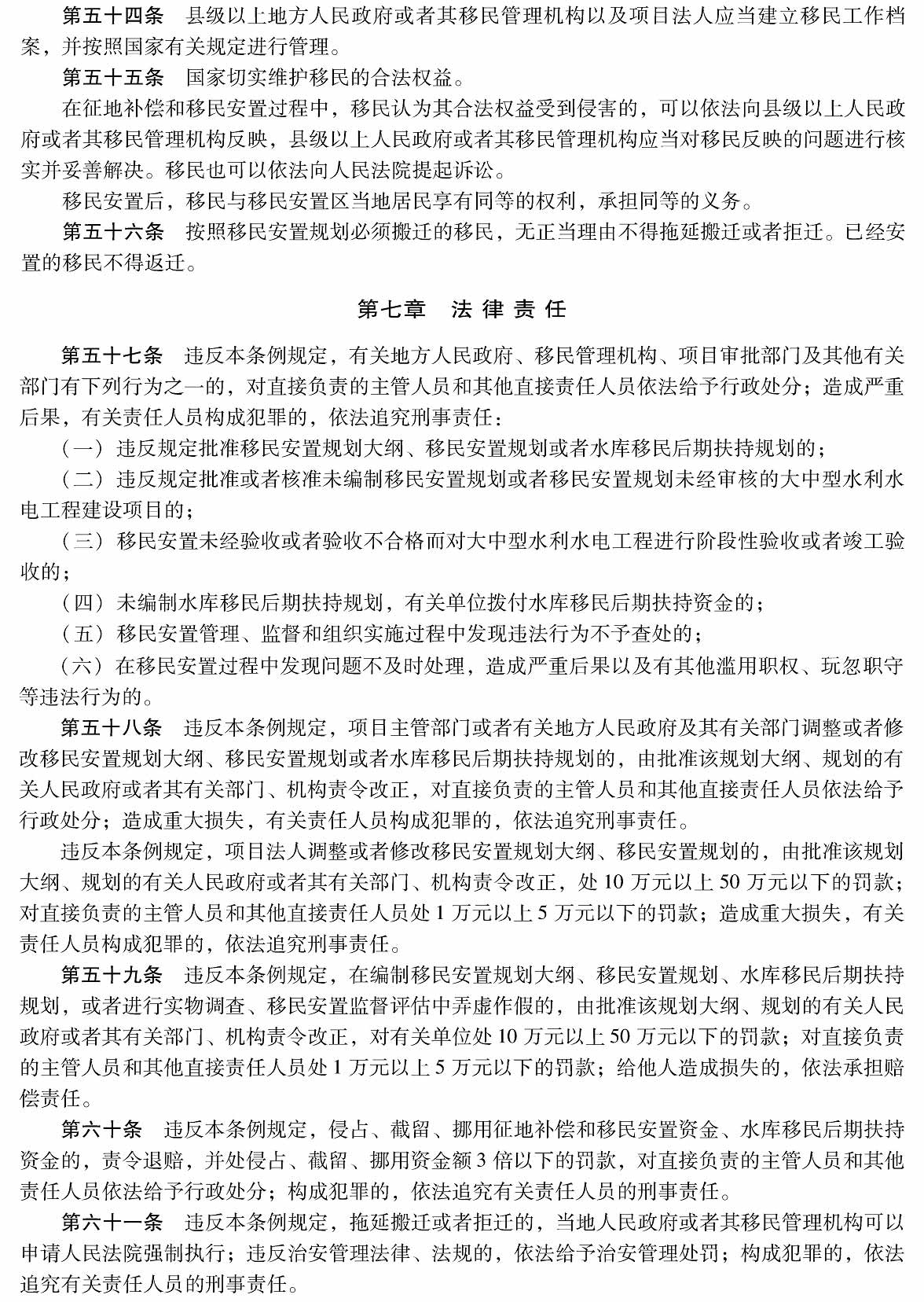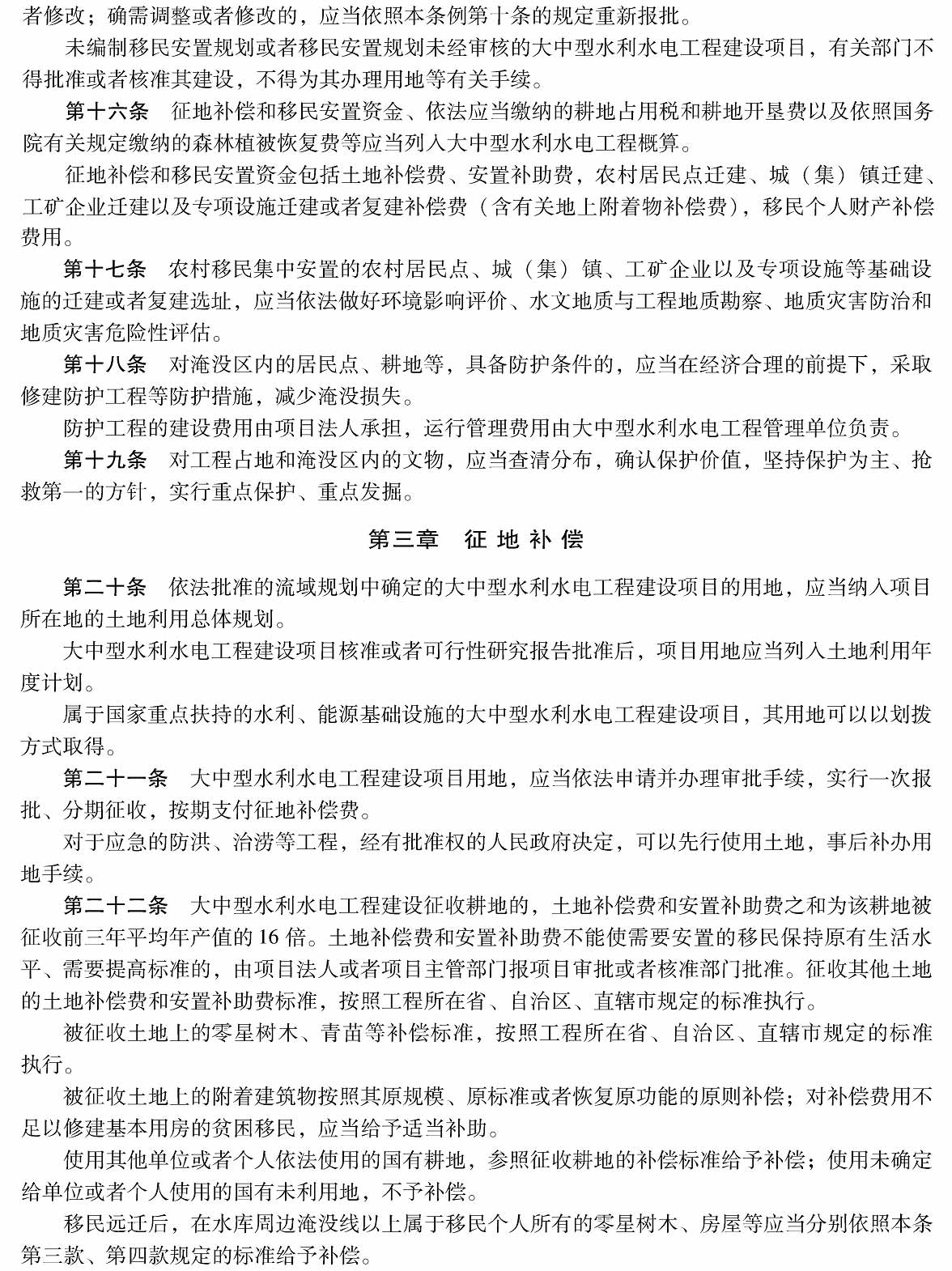 大中型水利水电工程建设征地补偿和移民安置条例