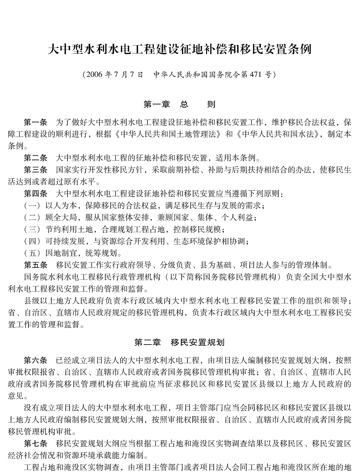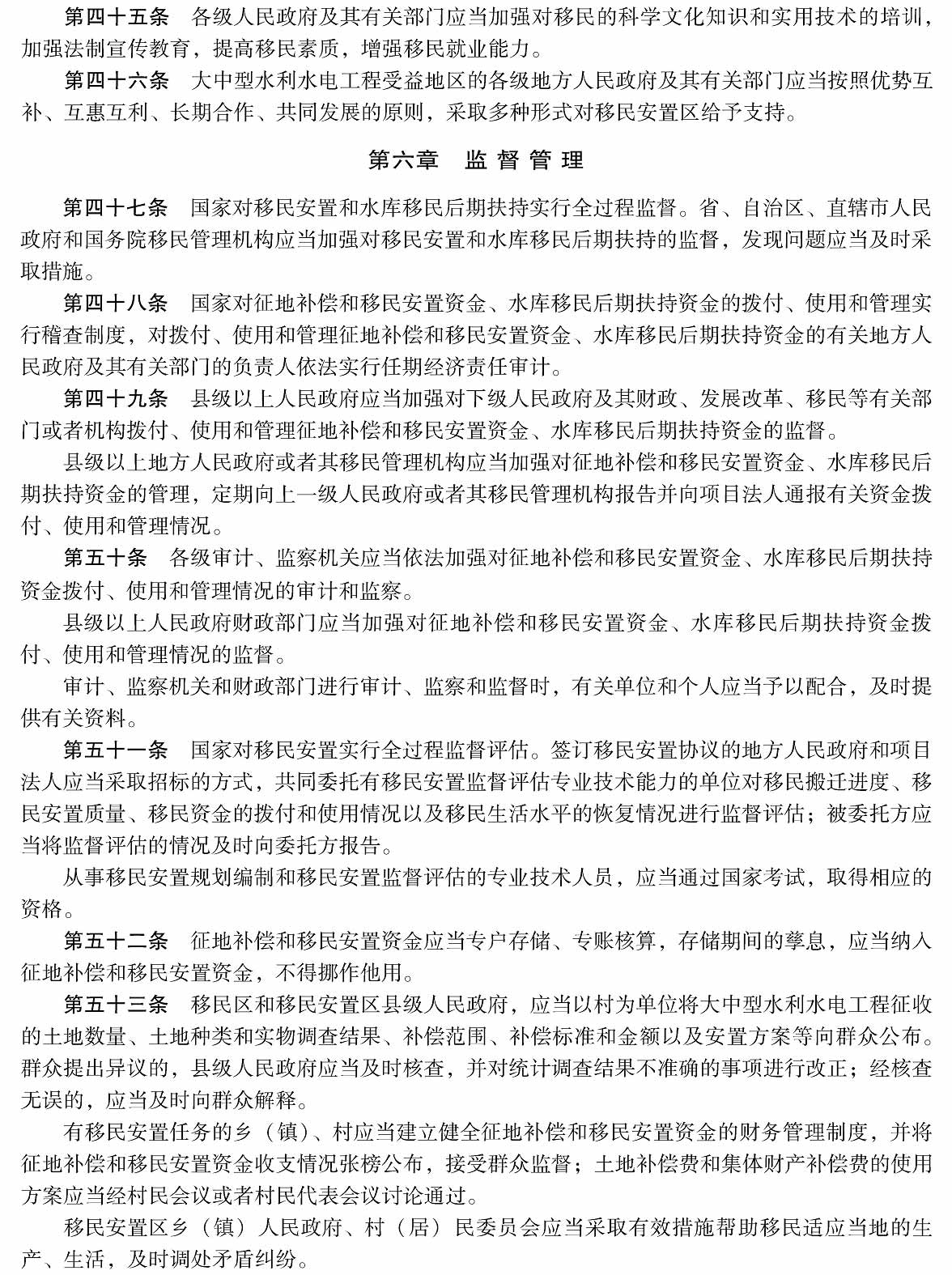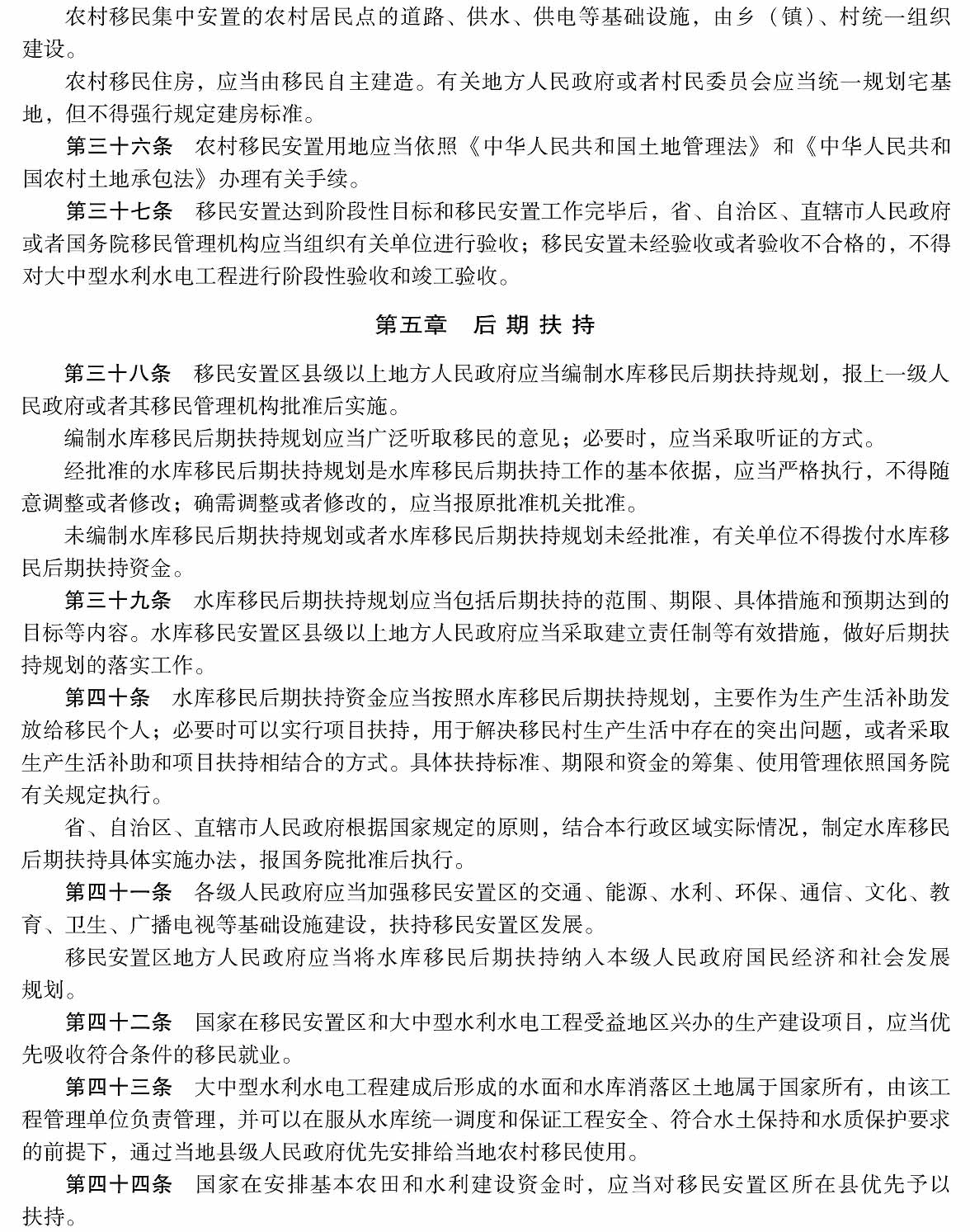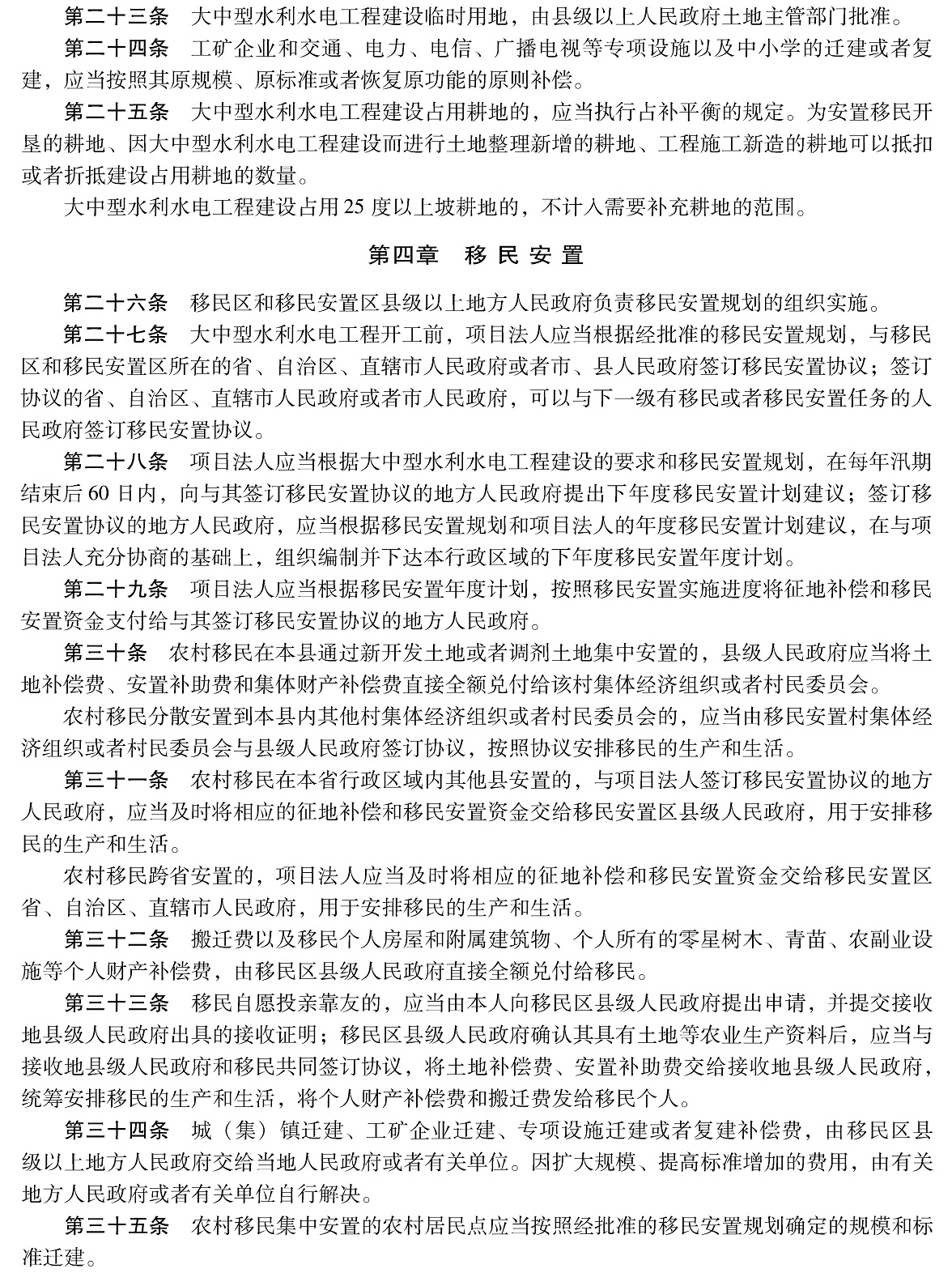 大中型水利水电工程建设征地补偿和移民安置条例
